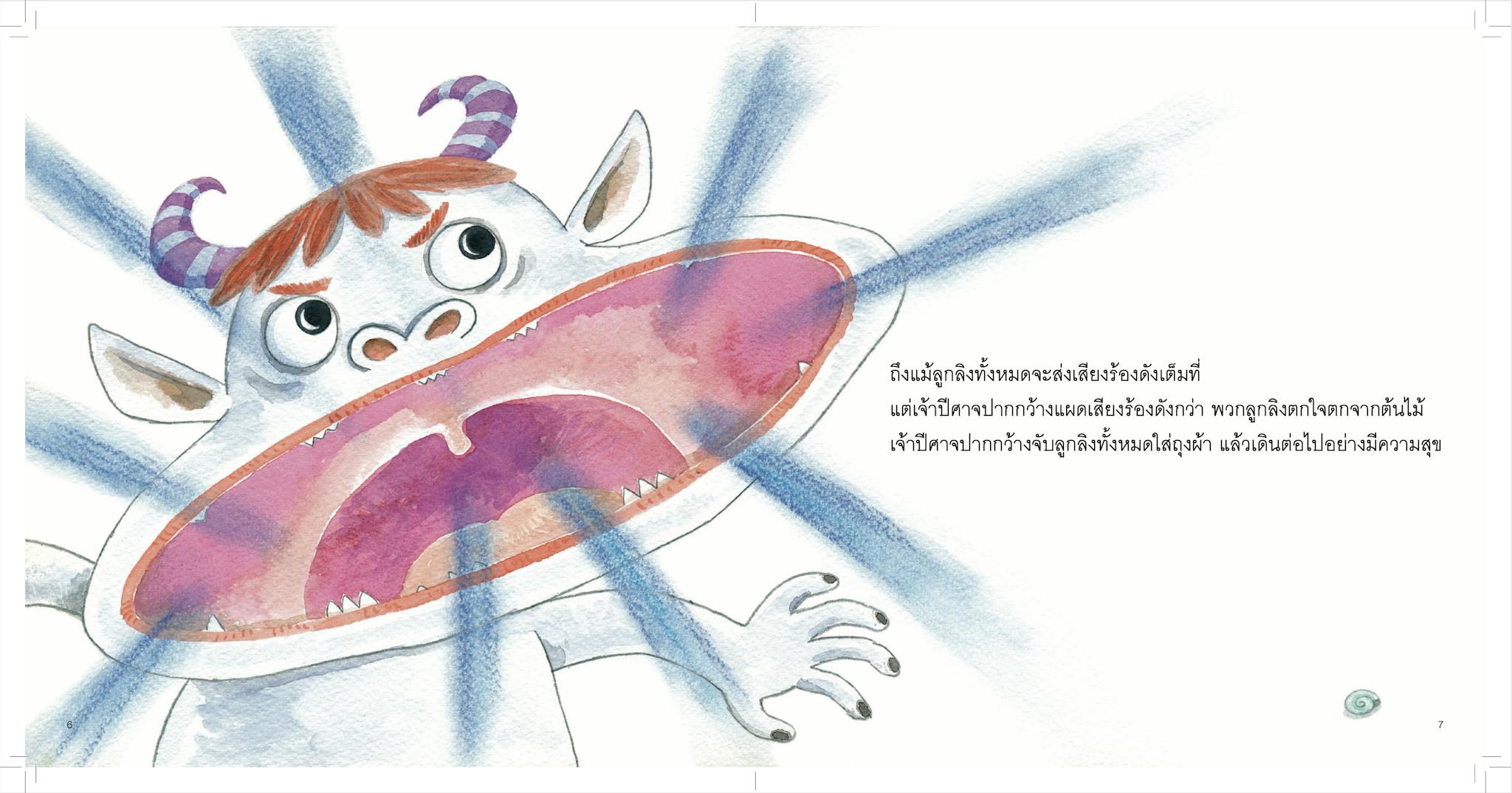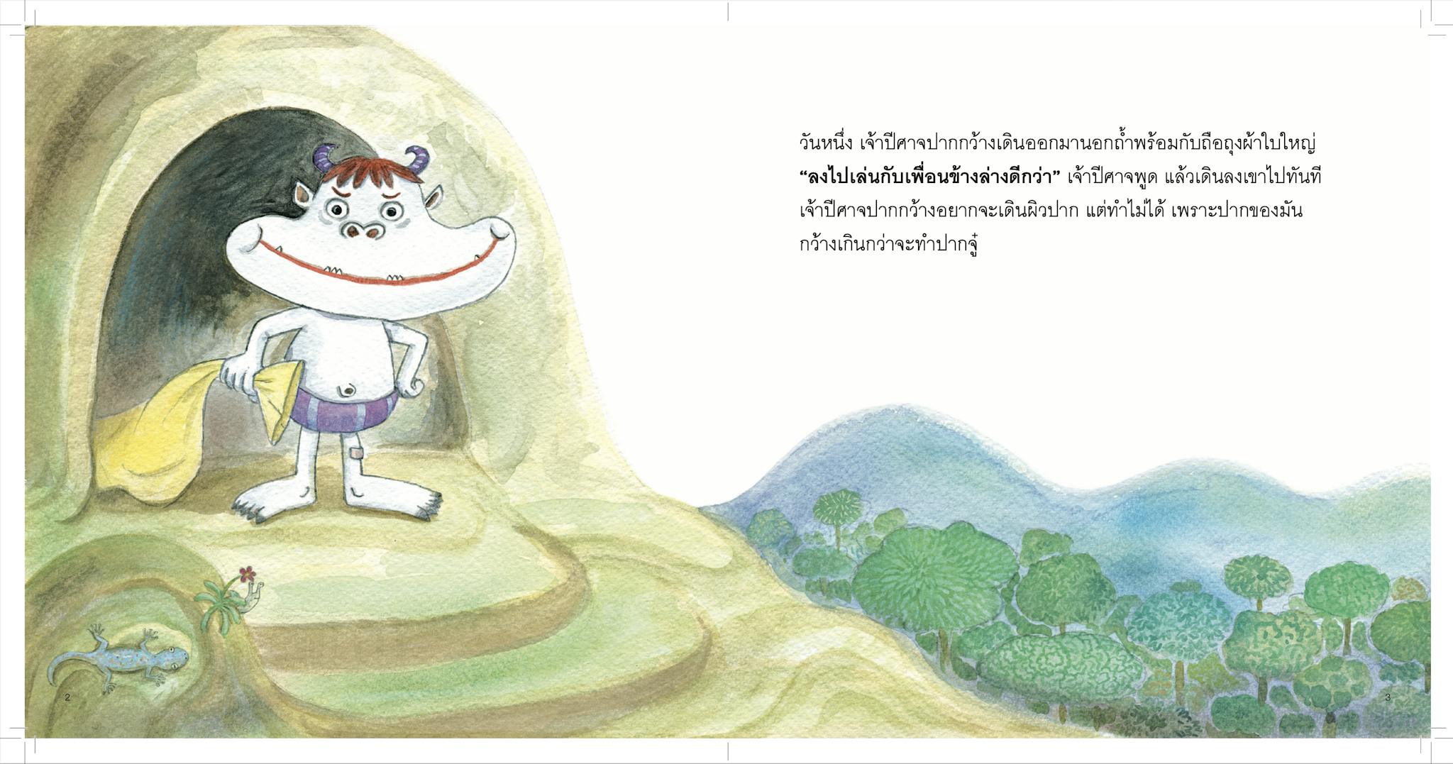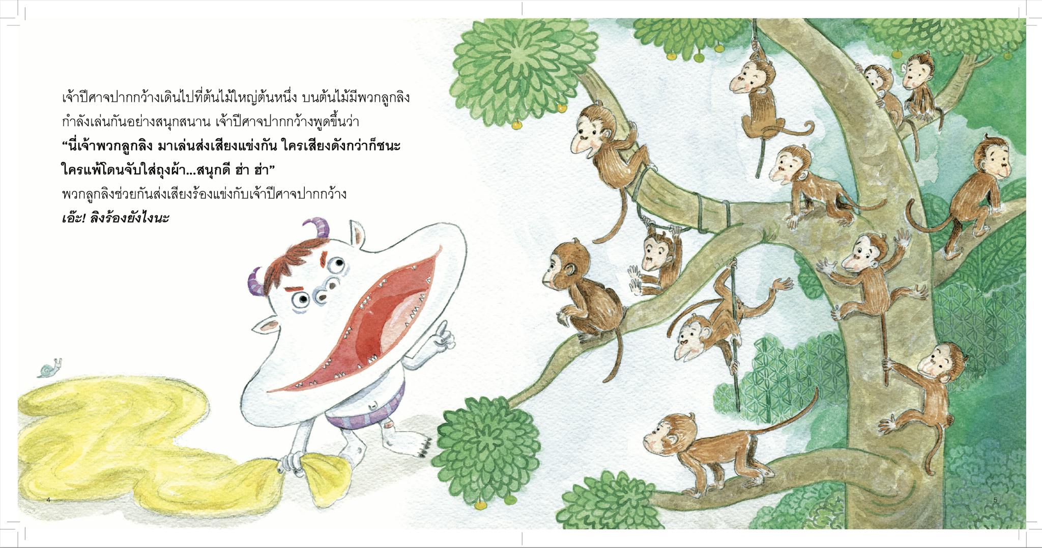 นิทานเล่าไปพับไปที่ชวนเด็กๆ มาพับของเล่นเพื่อจัดการเจ้าปีศาจปากกว้างกัน เพราะปีศาจปากกว้างเดินถือถุงผ้าใบใหญ่ไปท้าแข่งกับสัตว์ต่างๆ ในป่า ว่าใครจะส่งเสียงดังกว่ากัน แต่ไม่มีใครสามารถเอาชนะเจ้าปีศาจปากกว้างได้เลย ทุกตัวจึงถูกจับใส่ถุงผ้า จนกระทั่งปีศาจปากกว้างเดินมาเจอลูกสุนัขจิ้งจอก ที่กําลังทําของเล่นอยู่ พวกเขาจึงจัดการปีศาจปากกว้าง จนตกใจหนีไป ด้วยของเล่นทําเอง แต่จะเป็นอะไรนะ